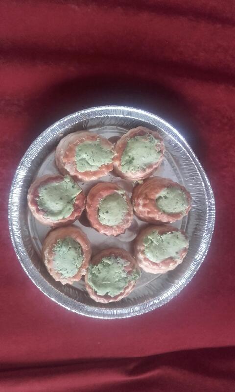 Escargots à la douzaine à la bourguignonne : beurre, ail, échalote, persil.