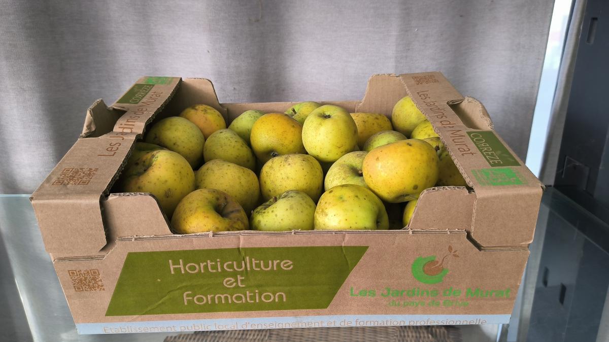 Caisse de 6kg de pomme Chantecler bio : pomme jaune, sucrée, légèrement acidulée, croquante et farineuse.