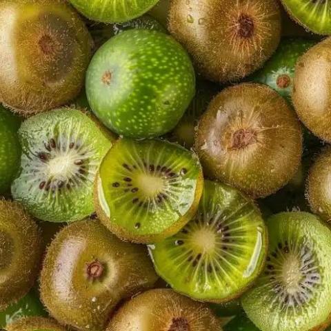 Kiwis cultivés à Condat sur Vienne, selon les règles de l'agriculture biologique, en barquette de 250g. Fruits d'environ 3 cm.