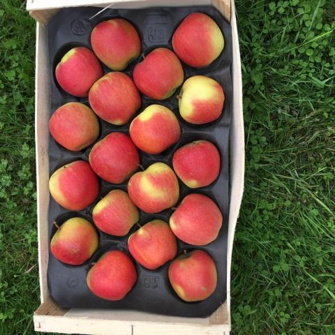 Caisse de 6kg de pomme Pinova bio : pomme rouge, sucrée et croquante.