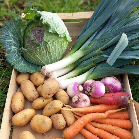 Productrice de légumes de saison et de champignons (shiitakés) en agriculture biologique.