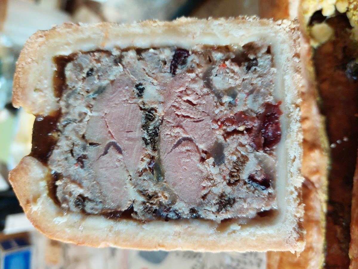 La pâte est faite pur beurre, farce de porc, morilles, aiguillettes de canard, cramberries