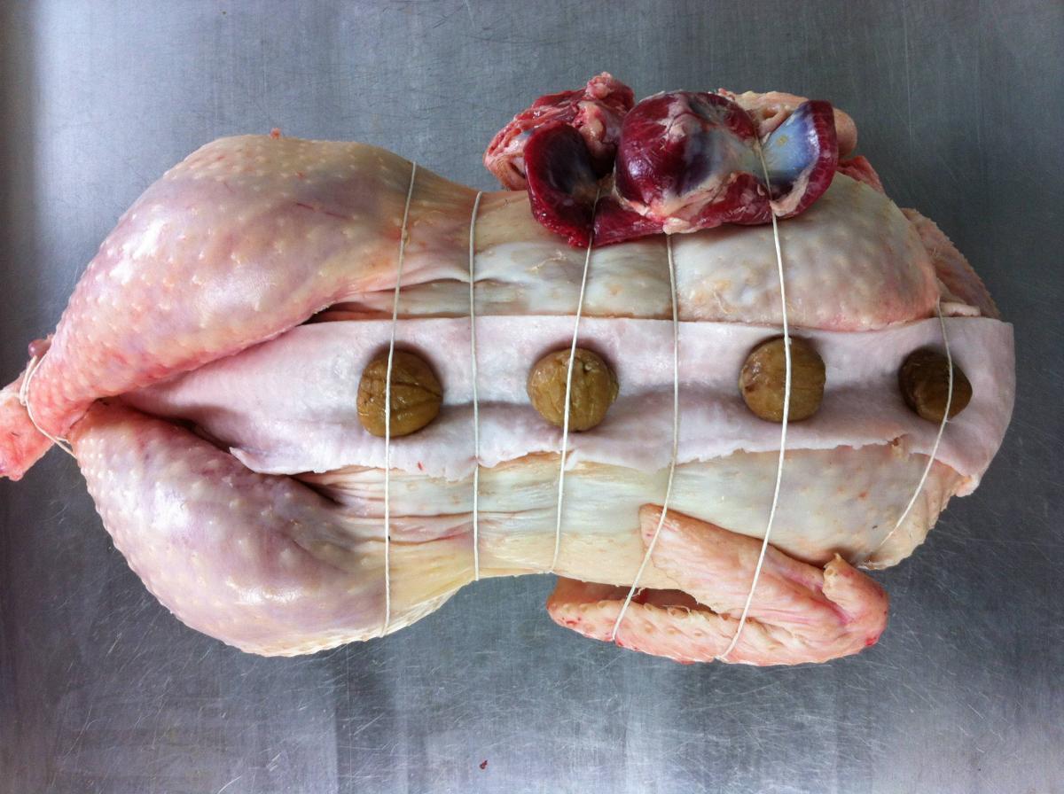 Poulet farci abricot, châtaignes, pruneaux, ananas ou nature 2kg avec abats